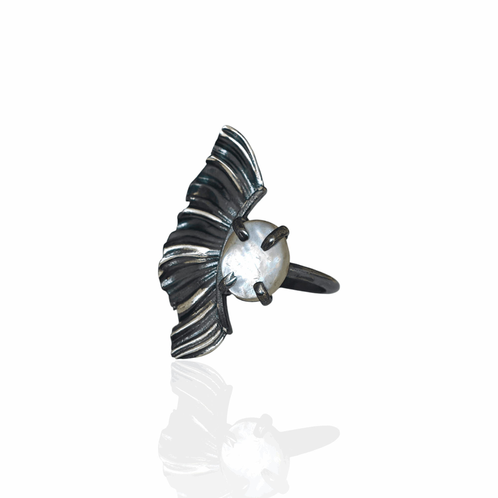 Handcrafted in silver 925 and available in three radiant finishes — silver, gold-plated silver, and oxidized silver — this ring offers both elegance and comfort, thanks to its adjustable band. The shimmering filntisi centerpiece captures the essence of the moonlight, reflecting grace and quiet strength.