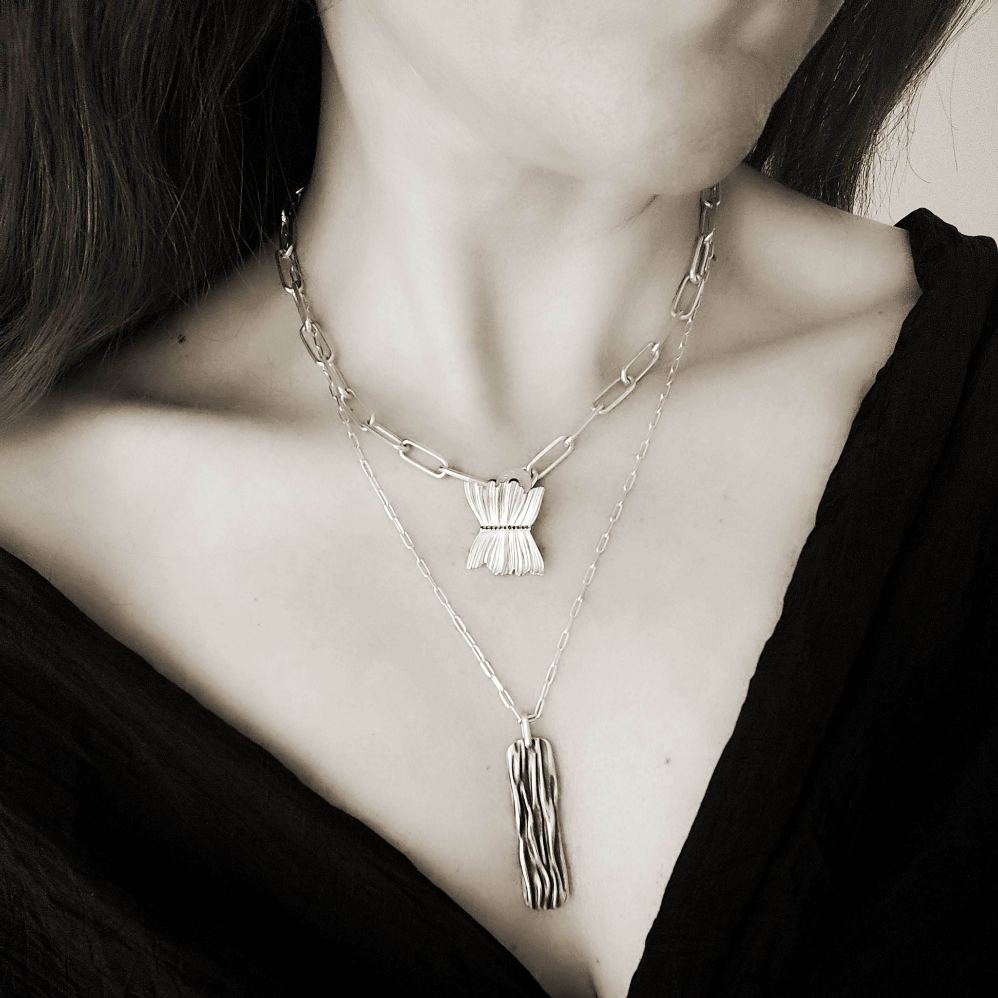 Its flowing surface catches light and shadow with each movement, embodying both strength and delicacy. Whether layered or worn alone, this pendant speaks of myths etched in metal and constellations suspended in time.