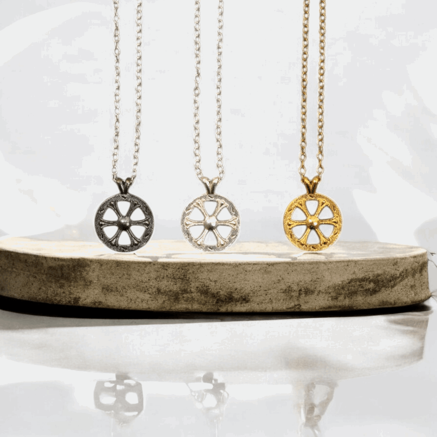 The Wheel of Fortune Amulet is a reminder that life is always in motion — a cycle of change, destiny, and possibility. Inspired by ancient symbols of fate, this amulet whispers: “Keep rolling, Ride the Wheel of Fortune " A mantra of strength and resilience, it carries the belief that every turn of the wheel brings new opportunities.