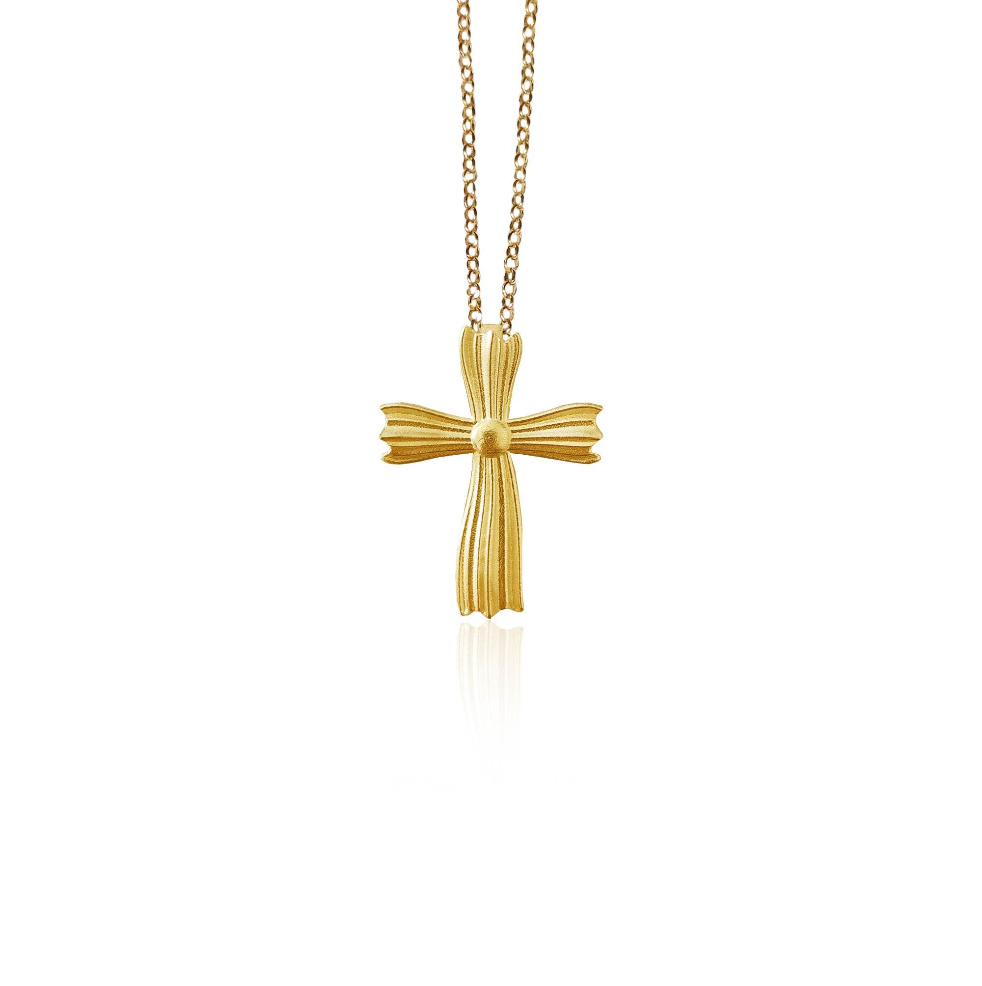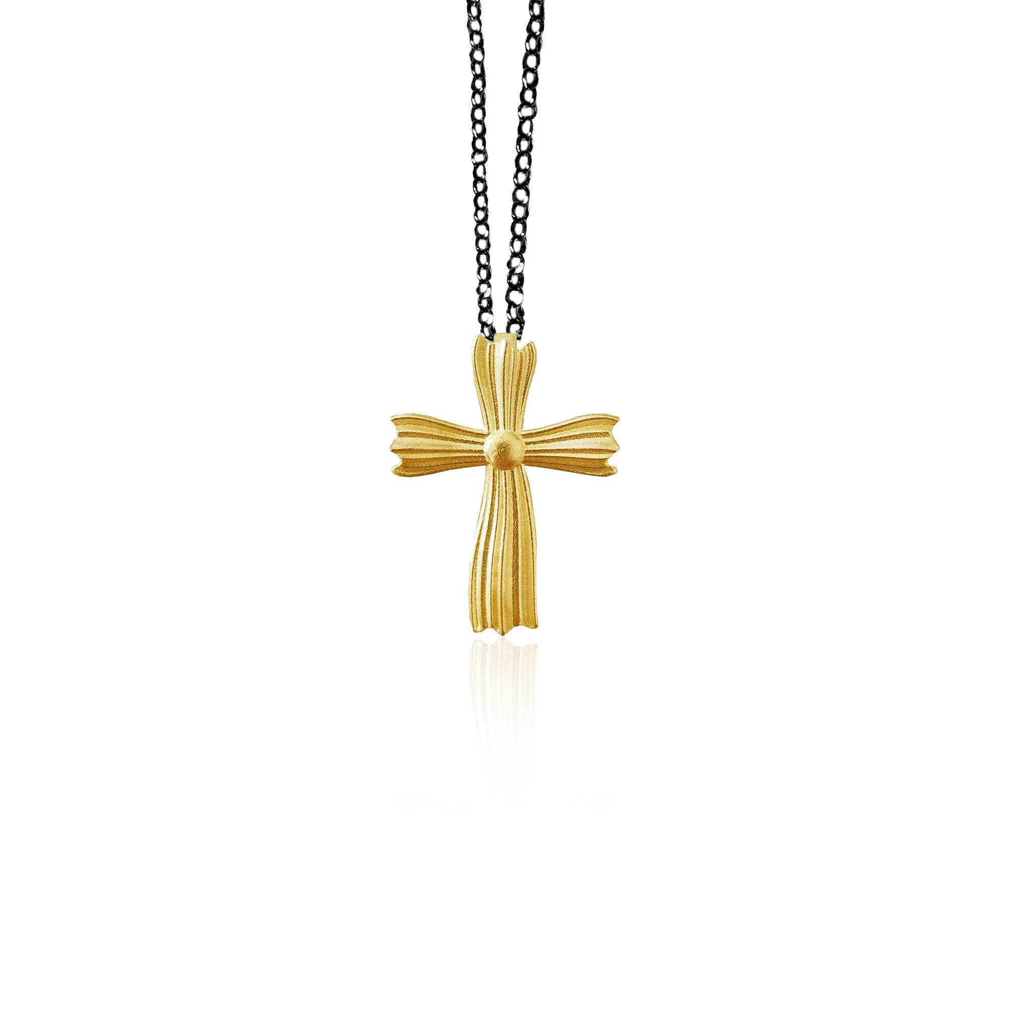 A whisper of heritage, cast in precious metal. The Small  Fustanela Cross draws inspiration from the iconic folds of the Greek fustanela—noble, proud, and enduring. Crafted in sterling silver, this cross is offered in 3 finishes: silver, silver  gold-plated and  oxidized silver. The pleated design gathers at the center like a tied garment, radiating elegance in every direction.