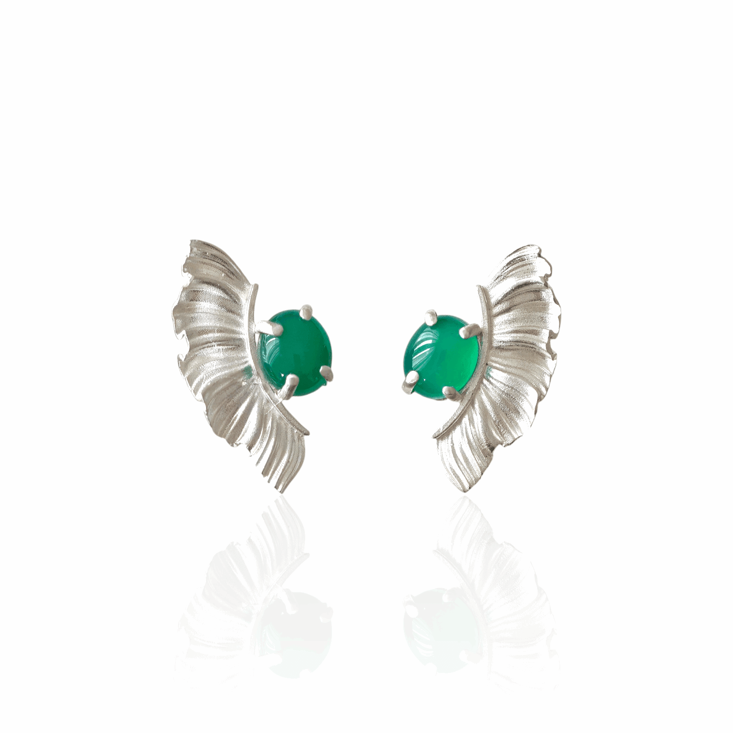 Inspired by Argus, the ever-watchful guardian with a hundred eyes, these earrings are sculpted like leaves caught in an invisible breeze. Part of the Peplos collection, their pleated fan form evokes the flowing garments of ancient goddesses and the grace of nature in motion.