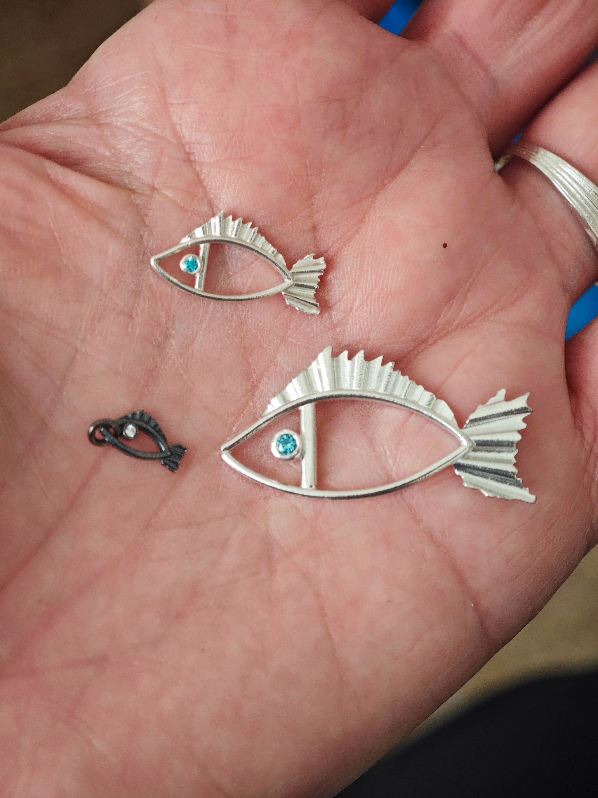 In this larger form, the fish becomes more sculptural, more present, a symbol that feels both ancient and playful, like a small treasure carried by the tide. Handcrafted in silver, silver gold plated, or silver all black oxidized, the Large Galene holds the same poetic soul as the smaller versions, but with a bolder, more expressive presence.