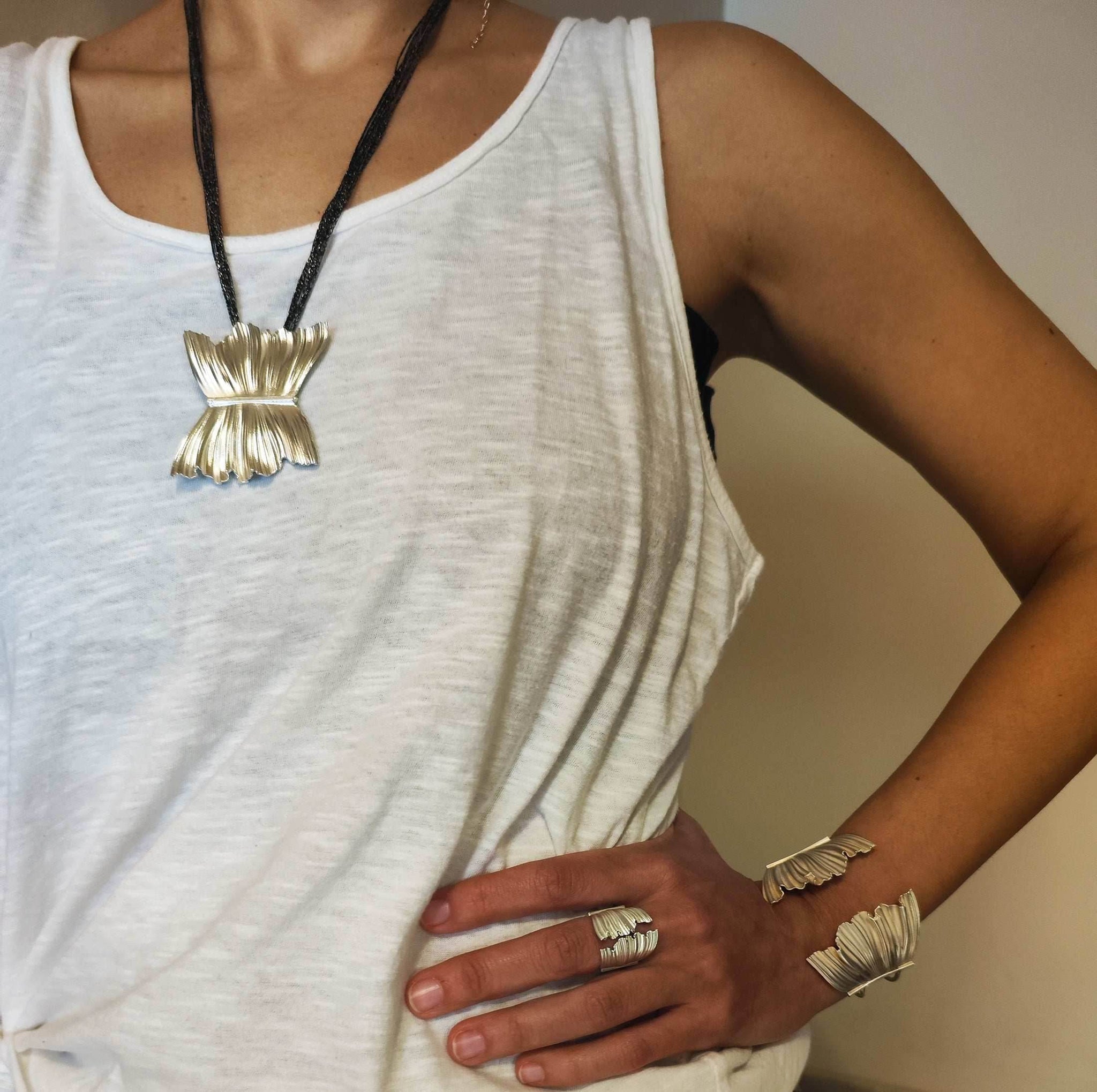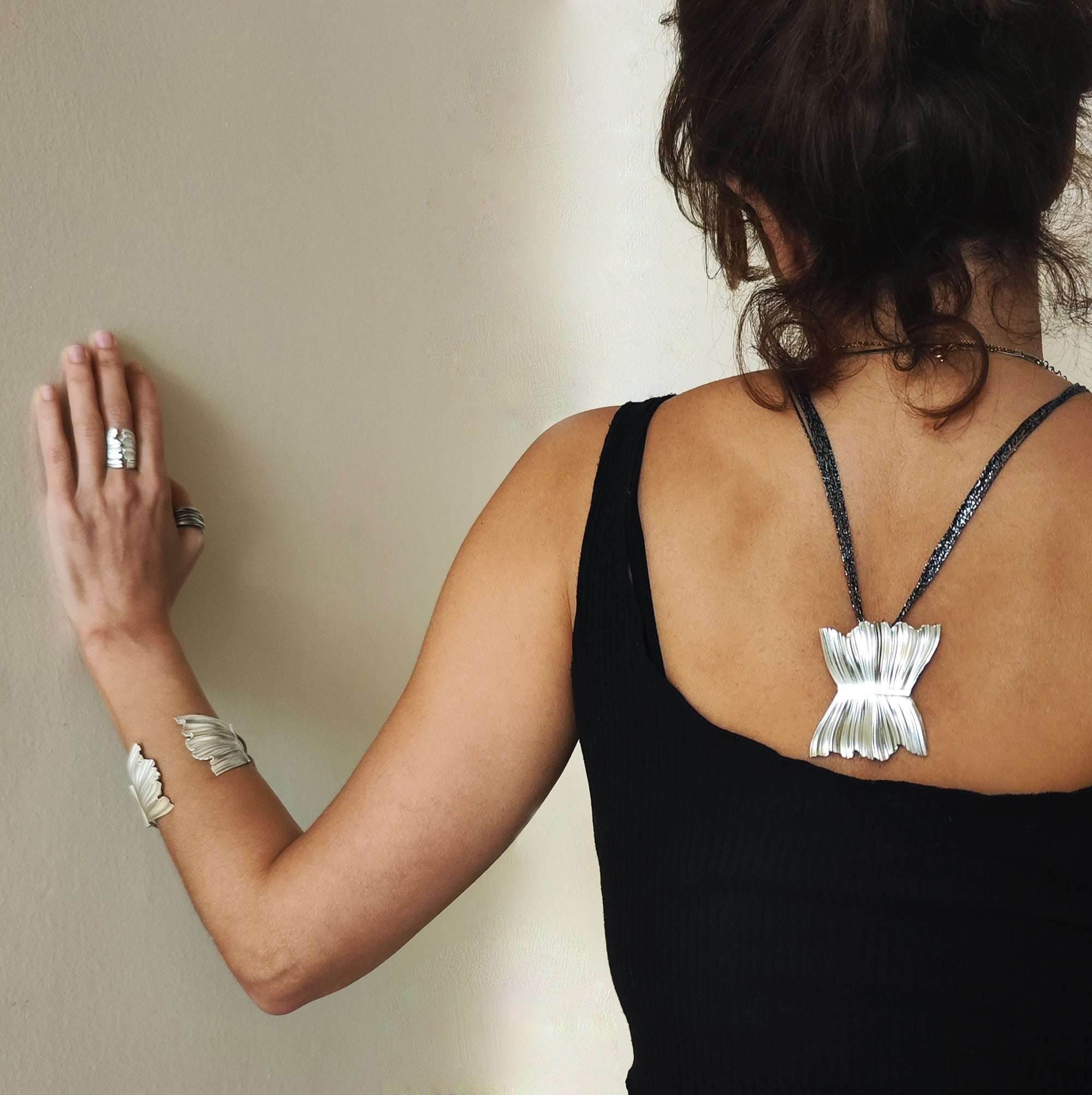 Sculptural Silver Statement Necklace | Peplos Collection