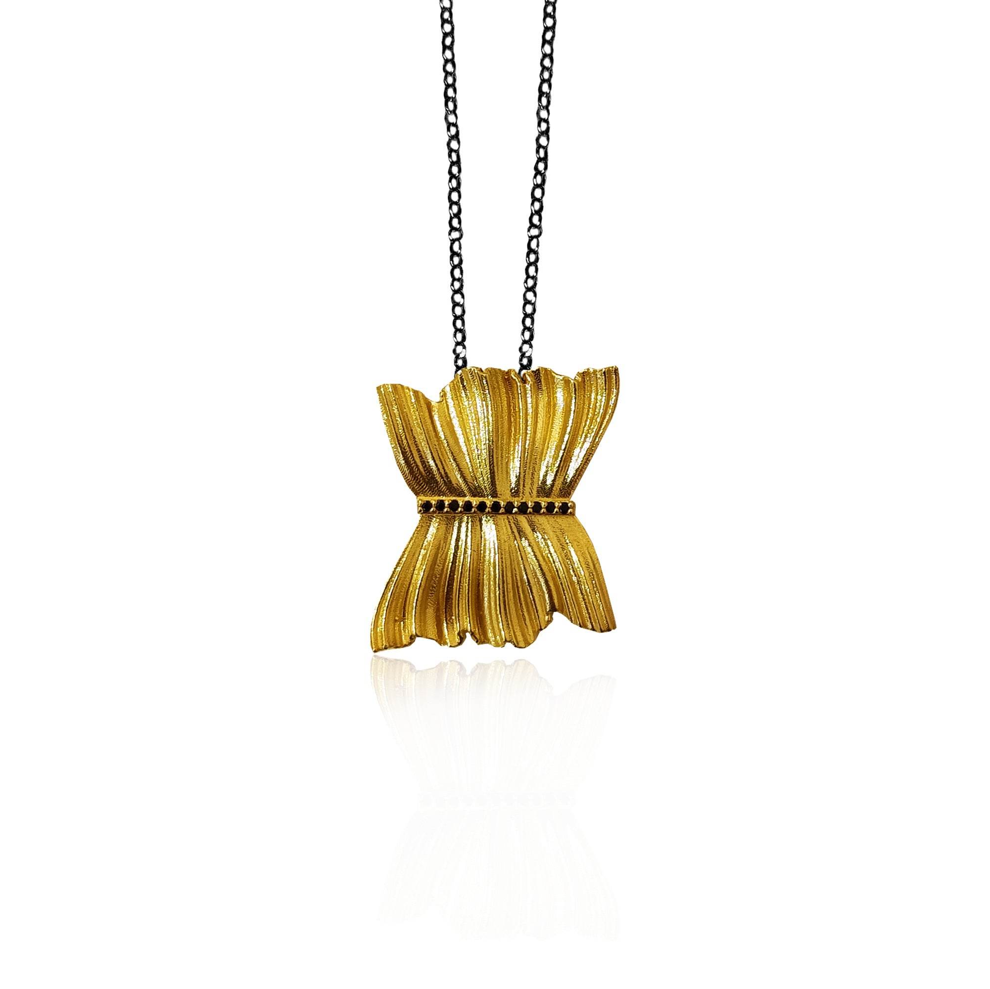 A tribute to ancient drapery and timeless grace, the Double Fustanela Charm Necklace echoes the folds of ceremonial garments once worn by deities and dancers beneath the moonlit temples of Greece. Its double-pleated form, like twin waves caught mid-motion, captures the poetry of movement and memory.