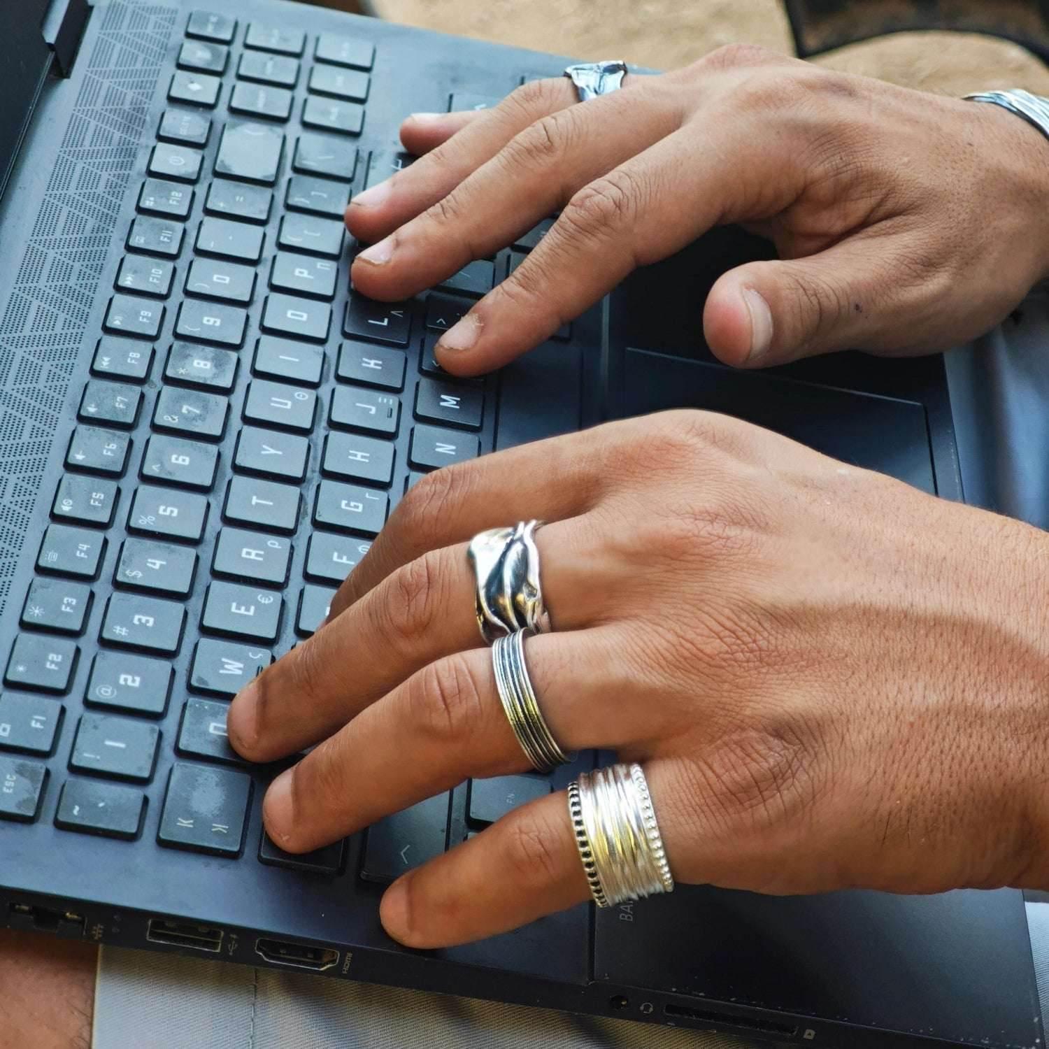 The Athenais Origin Ring is the first creation of the Athenais line — the spark from which the collection was born. Its sculptural folds capture movement and strength, like fabric frozen in time, while its raw texture carries the mark of handcrafting. Bold and mysterious, it holds the essence of beginnings — imperfect, powerful, and alive.