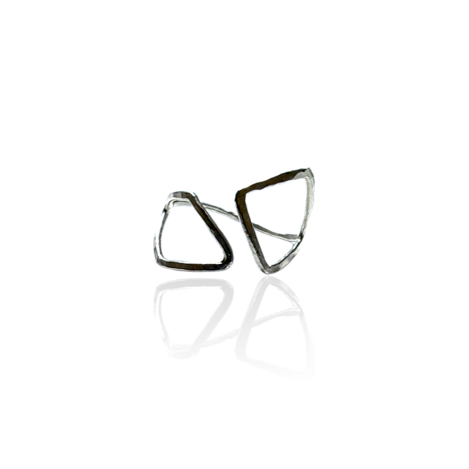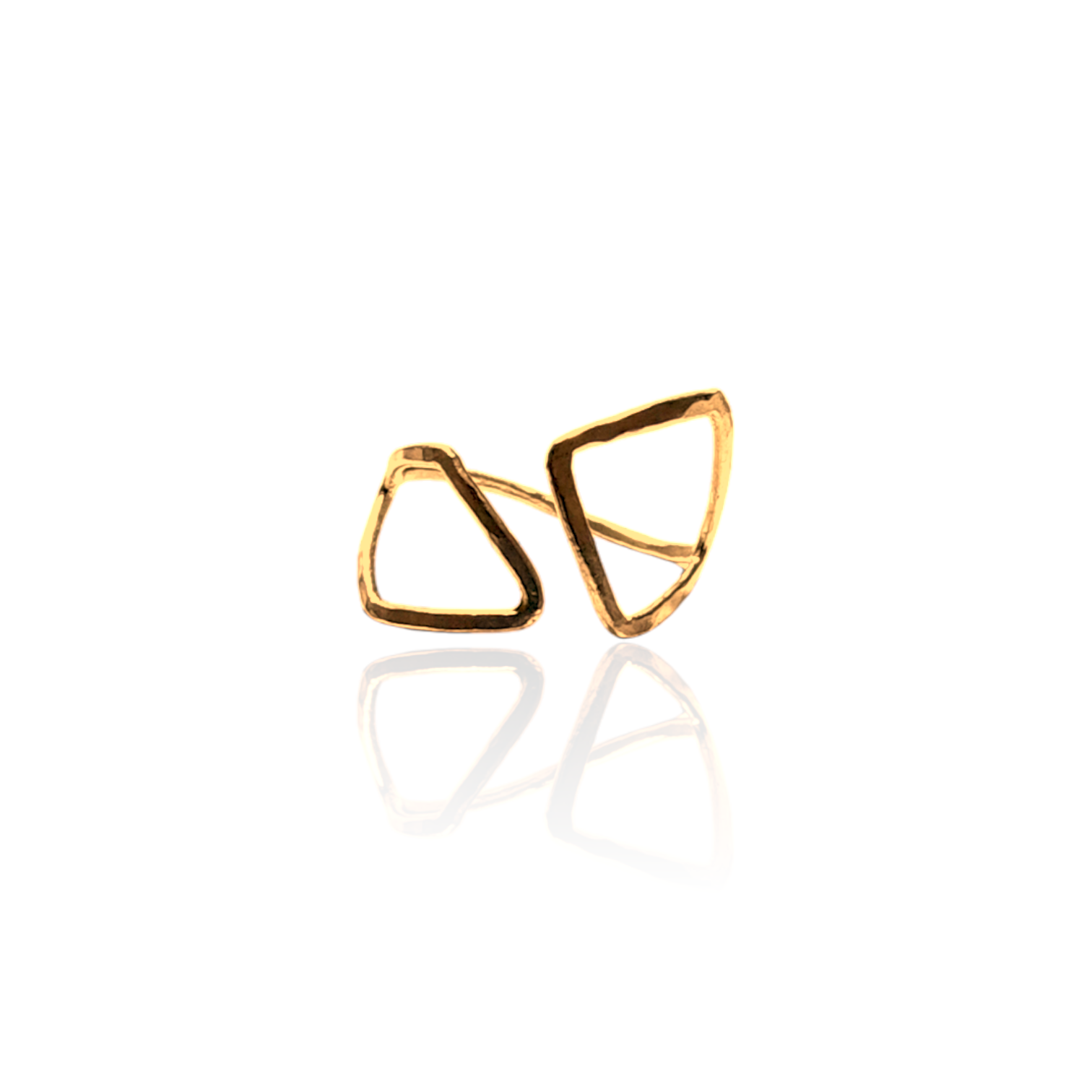 Born from the geometry of ancient paths, this open ring traces twin, softly-imperfect triangles—light as breath, bold as a sign. It stacks, it stands alone, it moves with you. Crafted by hand & soul in Athens.