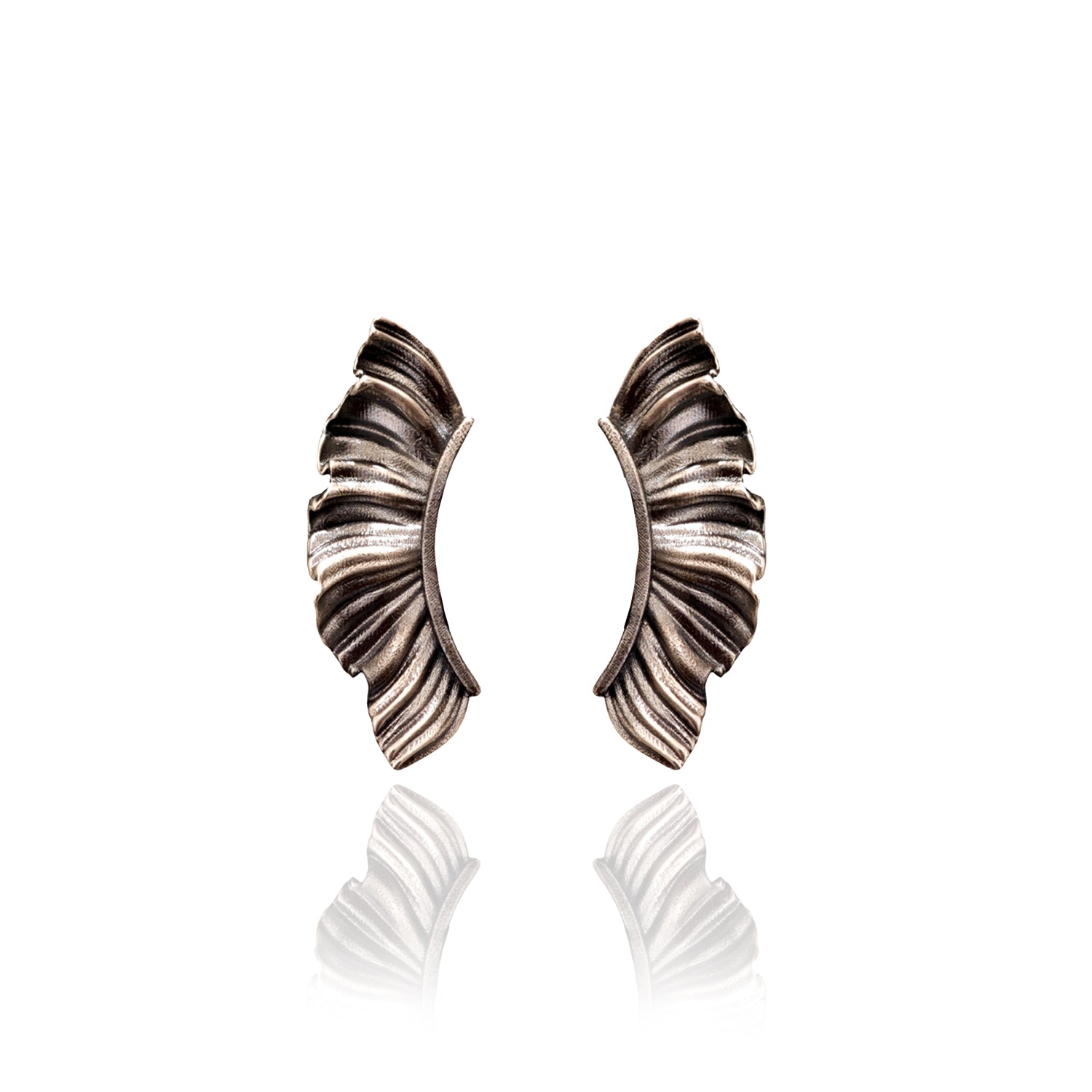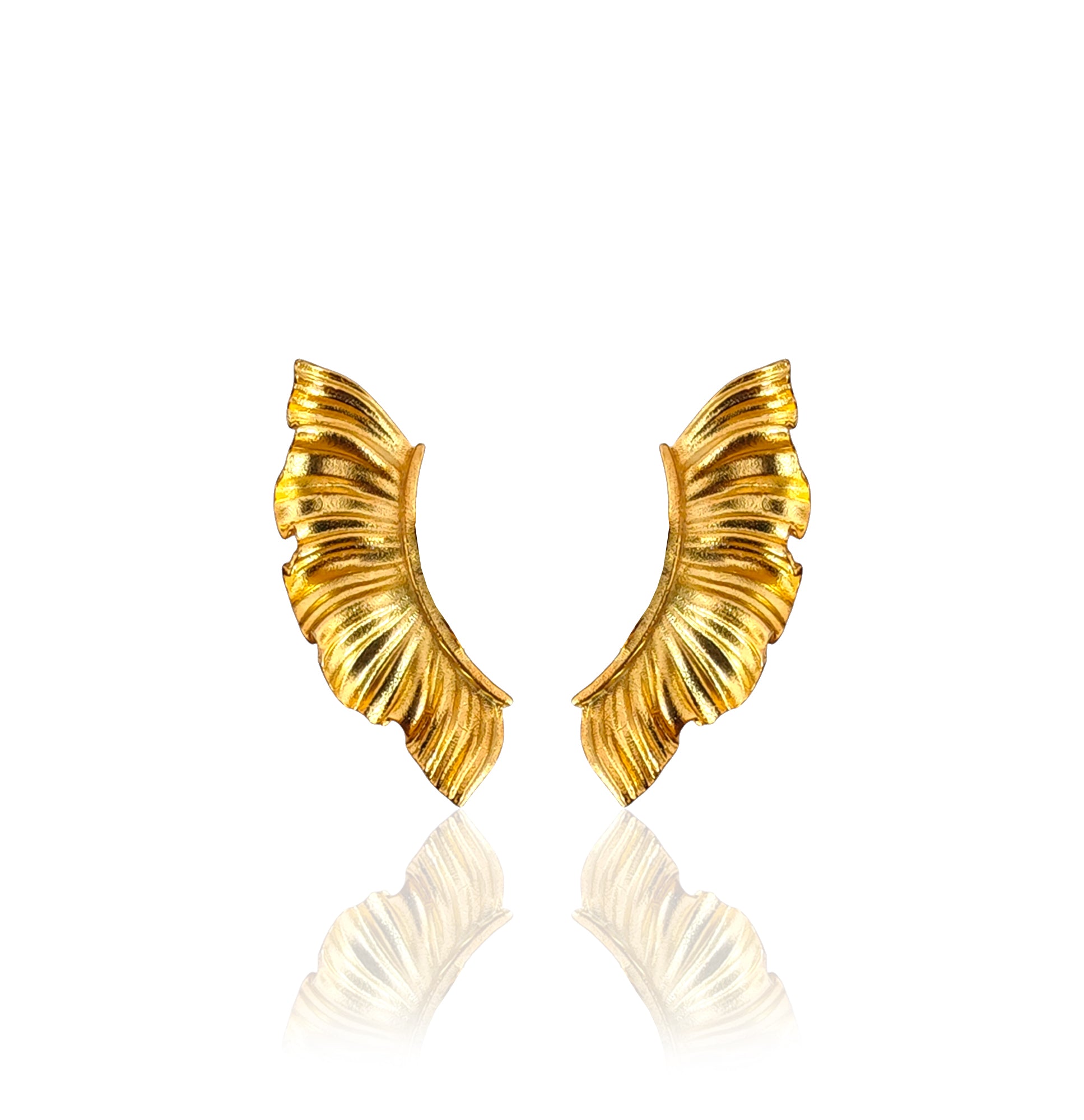 Aether Wing ear climbers feel bold but effortless: feather-like folds, sculptural volume, and a silhouette that turns even the simplest look into a statement.