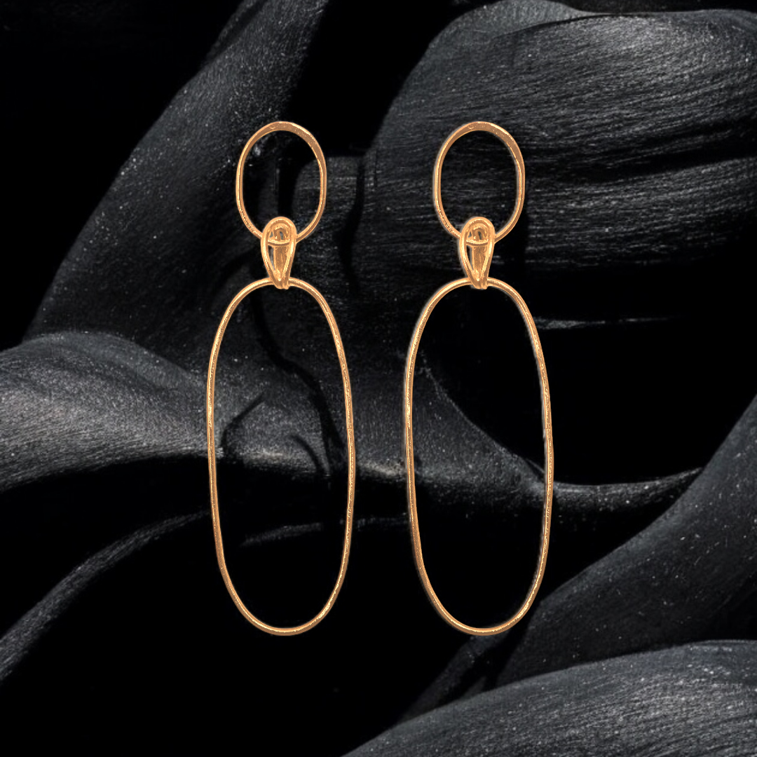 Delicate yet bold, the Lyra Loops are a tribute to harmony in motion — two open ovals, suspended in gentle balance. Their minimalist form echoes ancient instruments and celestial orbits, offering a quiet rhythm to your everyday ritual.