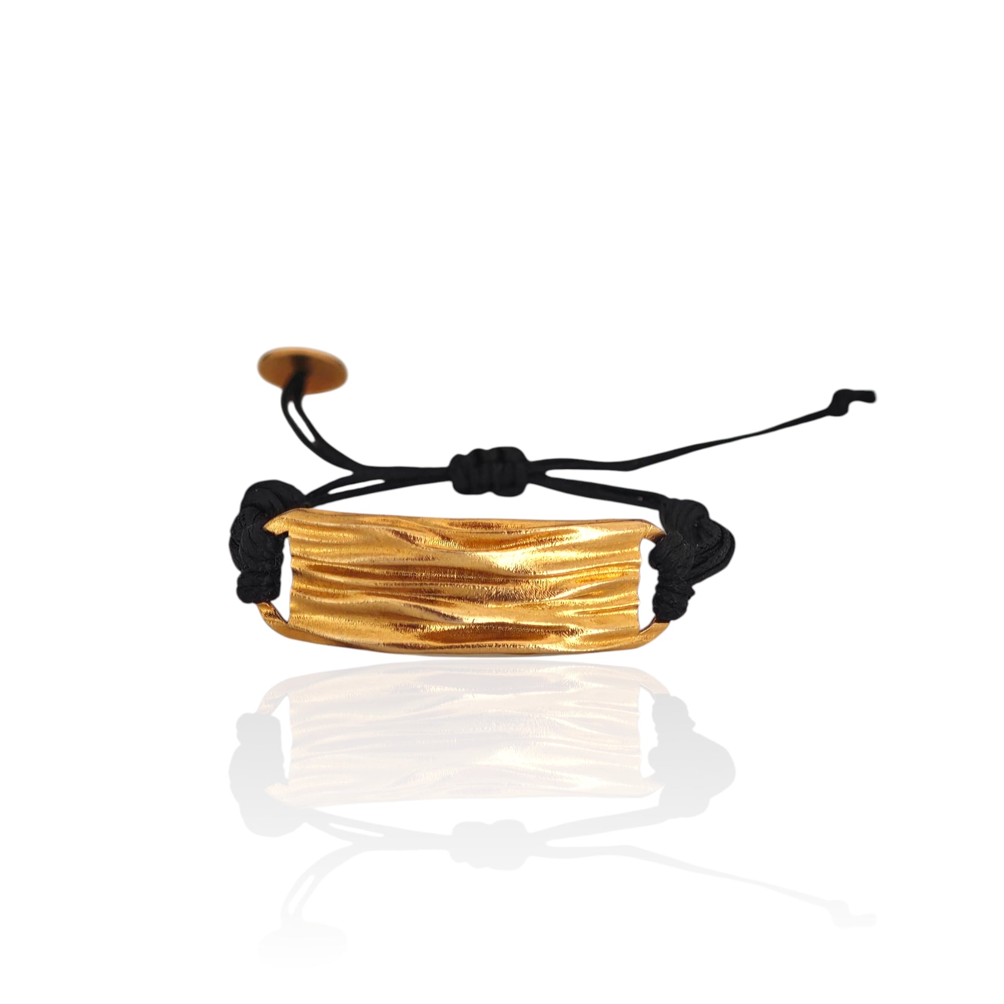 This bracelet is hand-sculpted into a draped bar, where every ripple is carved like a memory in metal. Worn on an adjustable cord, it becomes an everyday talisman: minimal, myth-inspired, and unmistakably Athenart.